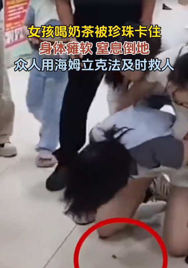重慶一女孩喝珍珠奶茶時(shí)意外窒息,危急時(shí)刻,周圍眾人迅速用海姆立克法接力施救,成功幫她排出堵塞的珍珠,化險(xiǎn)為夷。