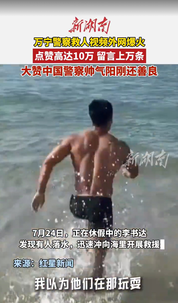 近日,一段中國警察休假勇救落水者的視頻在國外社交平臺爆火!視頻中,海南省萬寧市公安局民警李書達在海邊休假時,發現有人落水,毫不猶豫地沖向大海施救。這英勇一幕被拍下后,瞬間在國外引發熱議,點贊量逼近10萬,留言上萬條。外國網友紛紛留言:“他簡直是超級英雄!”“中國警察真是帥氣又善良!”