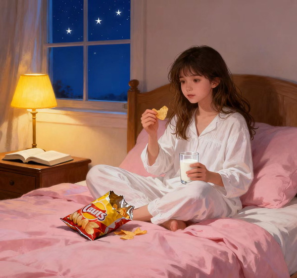 當晚餐所吃的食物基本被消化后,人體在睡前容易感到饑餓。如果此時進食,不久后便要入睡,未被消耗的熱量就容易囤積在身體里,造成肥胖。像一些小伙伴,晚上追劇、玩手機游戲時,常常會忍不住吃些堅果、薯片、巧克力之類的零食,或者喝點奶茶、可樂等含糖飲料,這些高熱量食物在睡前攝入,可就很難被消耗掉了。