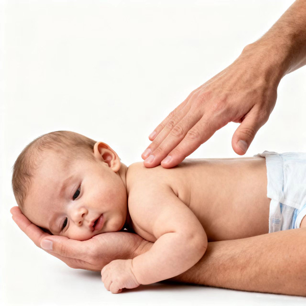 胸部按壓:翻轉嬰兒仰臥,用兩指在胸骨下半段按壓5次。