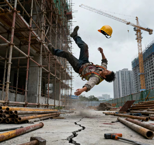 物體打擊危機 :高空拋物(如未固定的建材、工具)、起重吊裝失誤、重物墜落或甩落,哪怕一顆小小的鐵釘,從高處落下,也可能擊穿安全帽,造成頭部重傷。