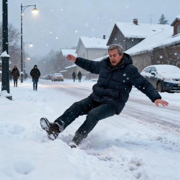 慢行小步:冰雪路面切忌快步行走,步速要慢,步幅要小,頻率一致,避免重心跟不上行走步速導致滑倒。