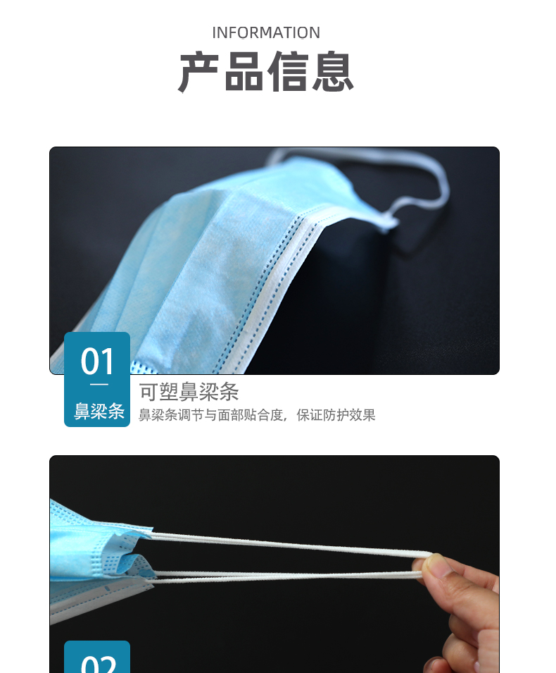 【結構組成】醫用外科口罩由口罩體、鼻夾和口罩帶組成,口罩體由無紡布和熔噴布制成。醫用外科口罩在10萬級潔凈間生產,未經消毒處理微生物指標符合技術要求。