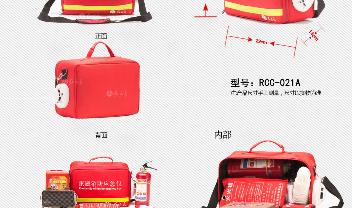 | 型號:RCN-021A火災逃生包 | 材質:600D滌綸 | 顏色:紅 | ||||||