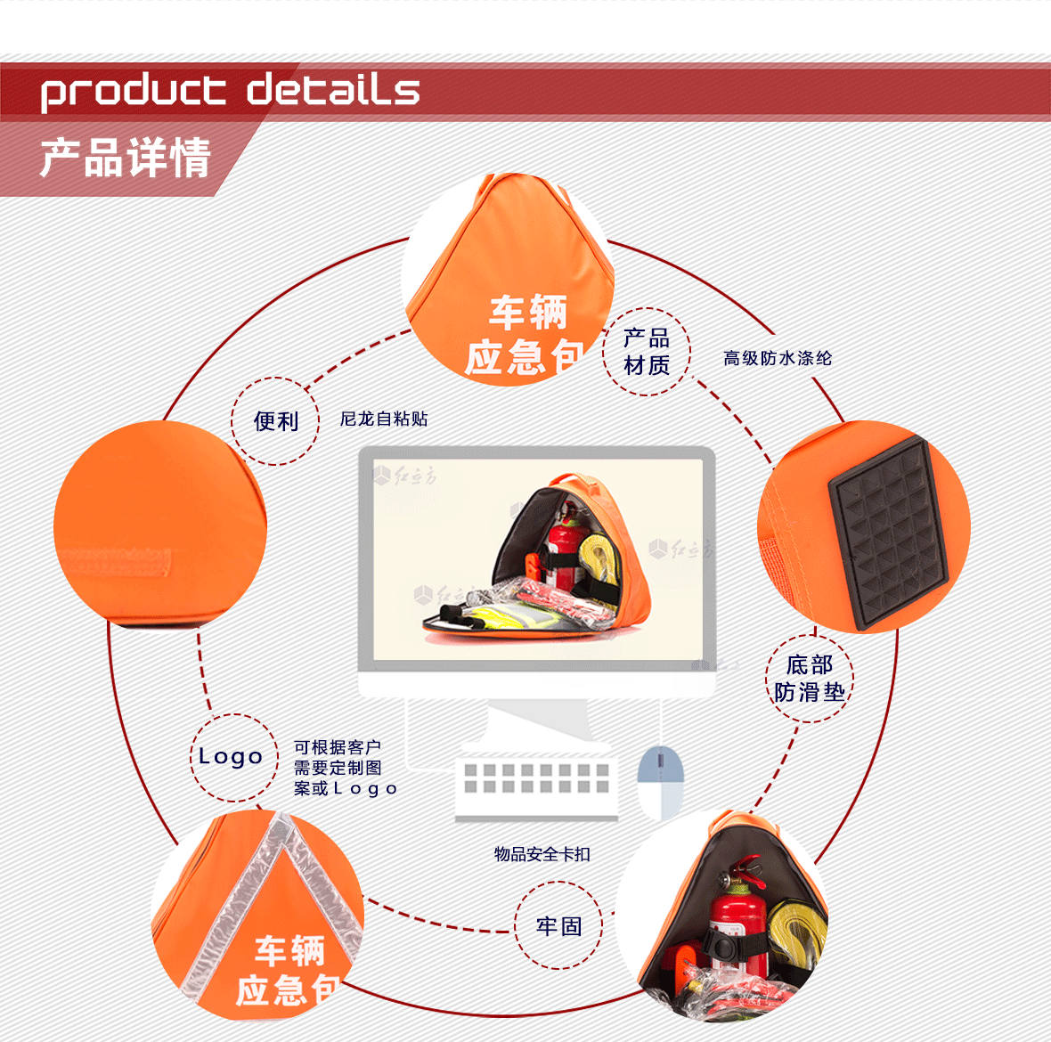 | 型號:RCC-004車載三角標志應急包 | 外包材質:滌綸 | 顏色:黃色 | ||||||